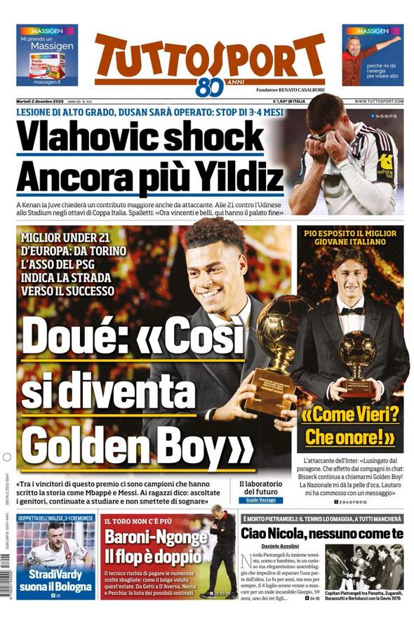 - 06:45 PRIMA PAGINA - TuttoSport: Doué: «Così si diventa Golden Boy»