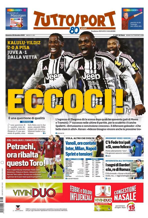 - 06:45 PRIMA PAGINA - TuttoSport: "Eccoci"