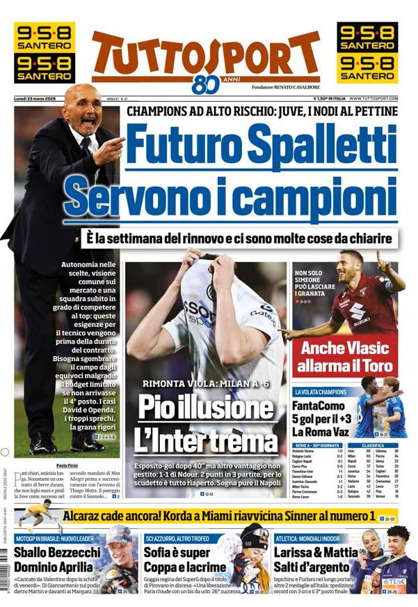 - 06:45 PRIMA PAGINA - TuttoSport: "Futuro Spalletti. Servono i campioni"