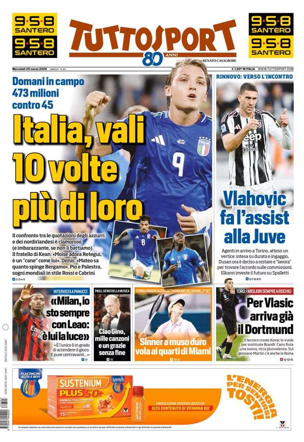 - 06:45 PRIMA PAGINA - TuttoSport: "Italia, vali 10 volte più di loro"