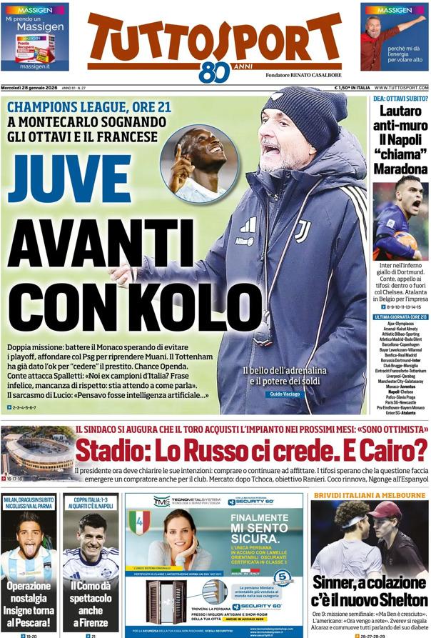 - 06:45 PRIMA PAGINA - TuttoSport: "Juve avanti con Kolo"