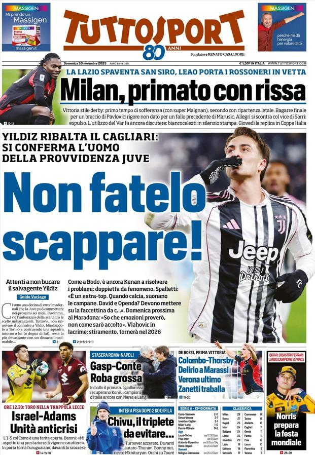 - 06:45 PRIMA PAGINA - TuttoSport: "Non fatelo scappare!"