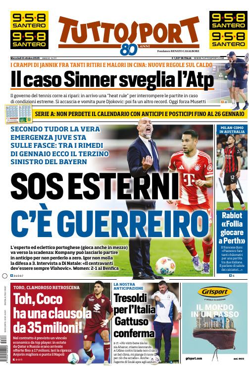 Ecco le notizie principali della prima pagina dell’edizione cartacea de il quotidiano TuttoSport in edicola oggi: