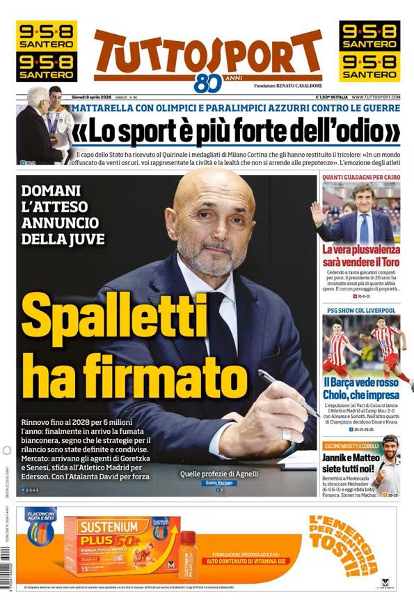 - 06:45 PRIMA PAGINA - TuttoSport: "Spalletti ha firmato"