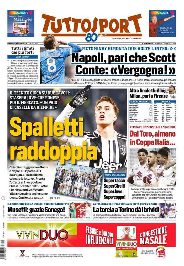 - 06:45 PRIMA PAGINA - TuttoSport: "Spalletti raddoppia"