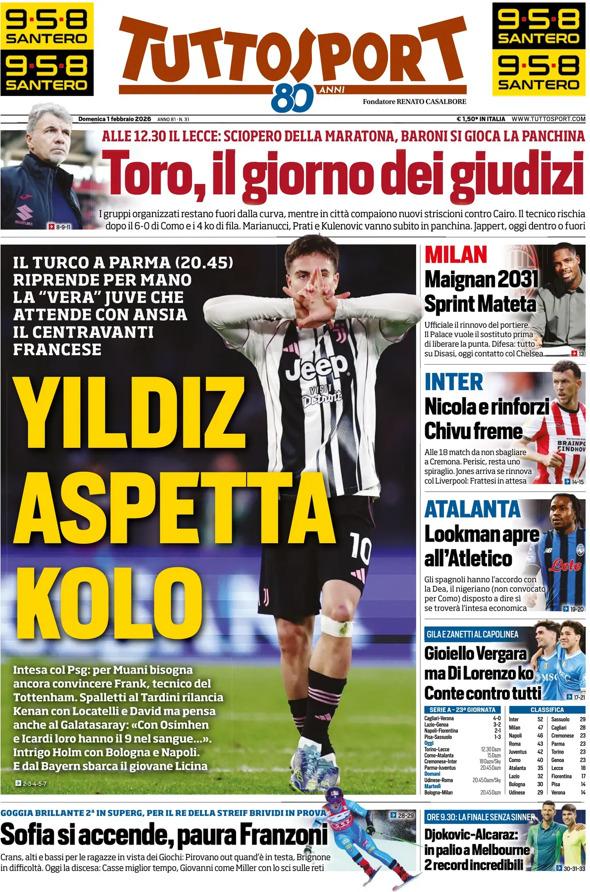 - 06:45 PRIMA PAGINA - TuttoSport: "Yildiz aspetta Kolo"