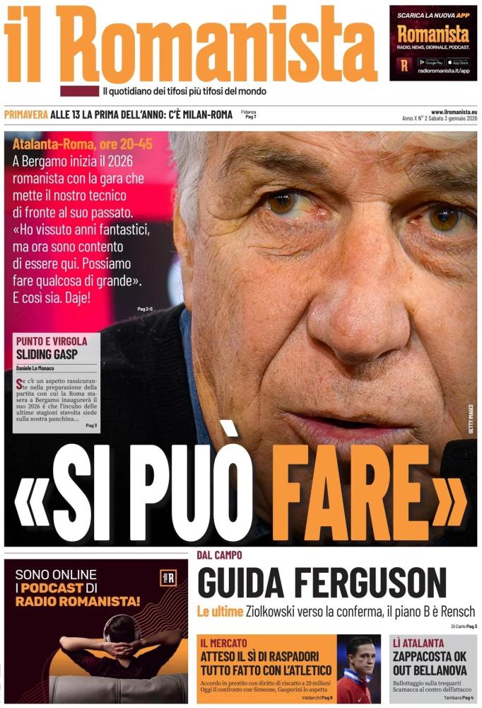 ROMA: RITORNO AL PASSATO PER IL FUTURO - L'apertura è interamente dedicata alla sfida emotiva e tecnica di stasera a Bergamo (ore 20.45). Il titolo ««SI PUÒ FARE»» accompagna il primo piano di Gian Piero Gasperini. - Il tecnico giallorosso affronta il suo passato: «Ho vissuto anni fantastici, ma ora sono contento di essere qui. Possiamo fare qualcosa di grande». L'obiettivo è iniziare il 2026 con un risultato importante.