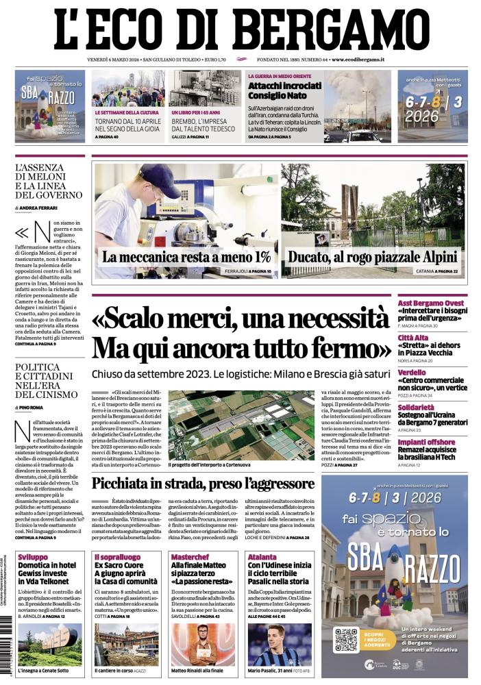 Ecco le notizie principali della prima pagina dell’edizione cartacea de L'Eco di Bergamo in edicola oggi:
