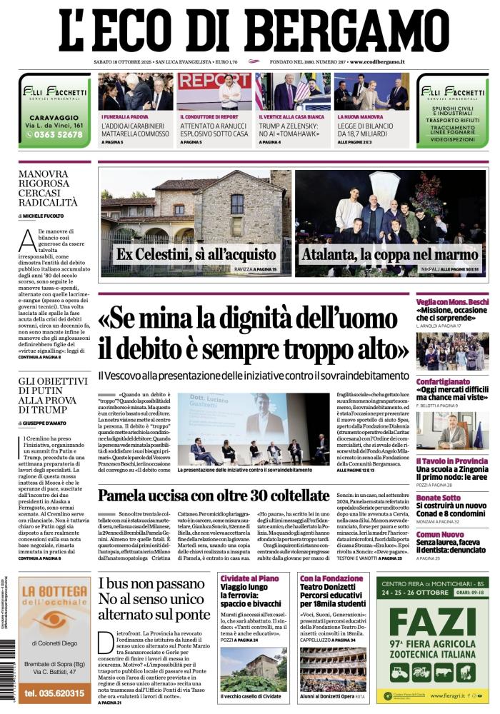 Ecco le notizie principali della prima pagina dell’edizione cartacea de "L’Eco di Bergamo" in edicola oggi:
