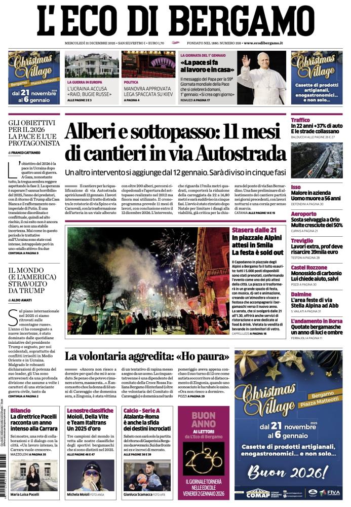 Ecco le notizie principali della prima pagina dell’edizione cartacea de L'Eco di Bergamo in edicola oggi: