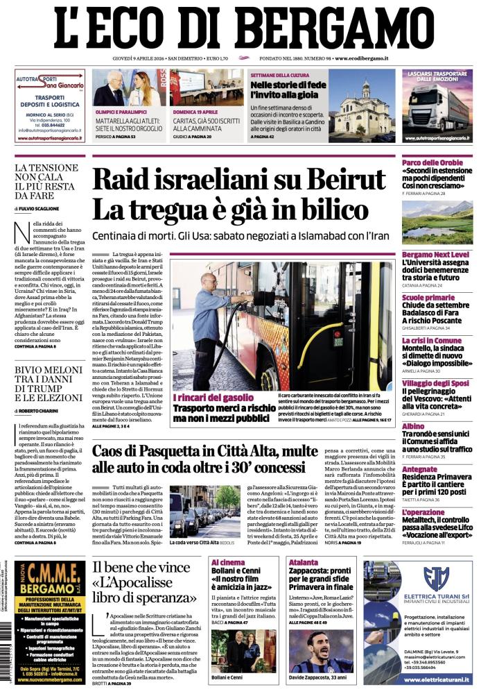Ecco le notizie principali della prima pagina dell’edizione cartacea de L'Eco di Bergamo in edicola oggi: