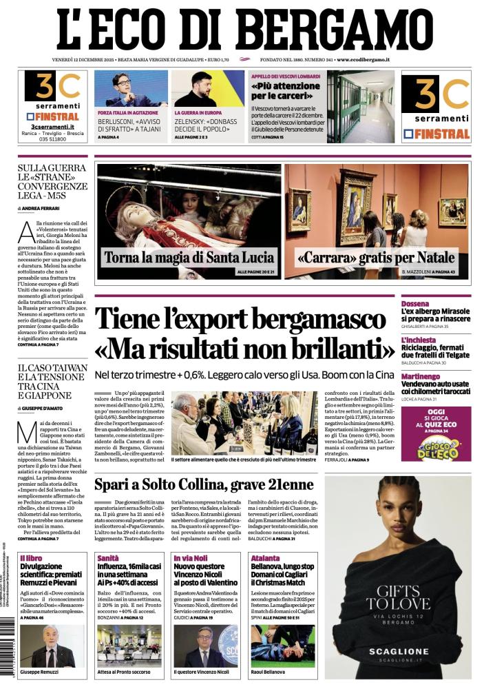 Ecco le notizie principali della prima pagina dell’edizione cartacea de L'Eco di Bergamo in edicola oggi: