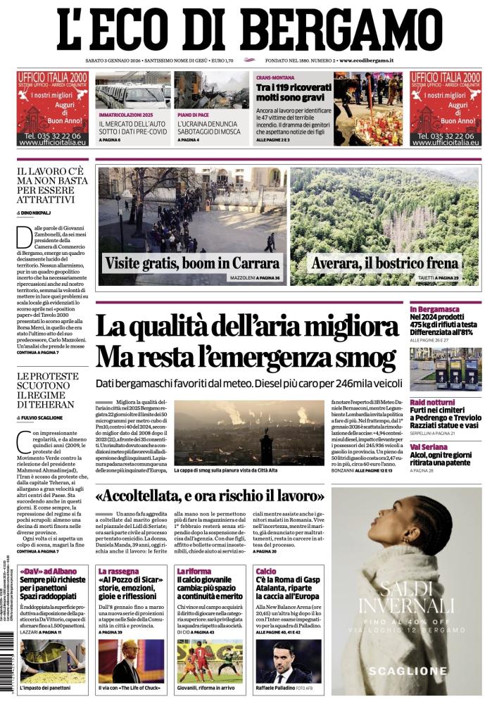 Ecco le notizie principali della prima pagina dell’edizione cartacea de L'Eco di Bergamo in edicola oggi: