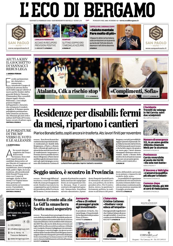 - 06:45 PRIMA PAGINA - L'Eco di Bergamo: "CdK a rischio stop"