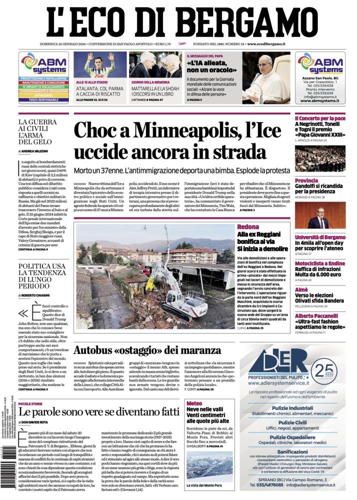 Ecco le notizie principali della prima pagina dell’edizione cartacea de L'Eco di Bergamo in edicola oggi: