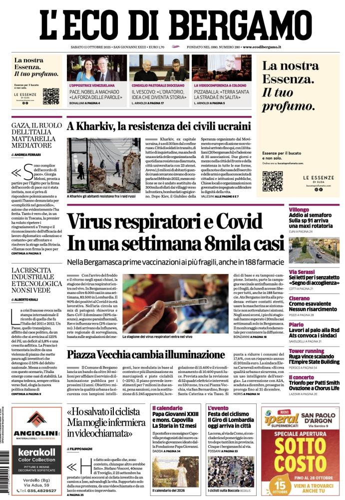 Ecco le notizie principali della prima pagina dell’edizione cartacea de "L’Eco di Bergamo" in edicola oggi: