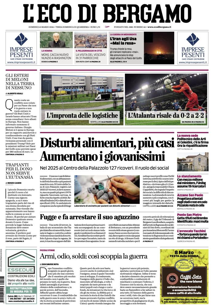 Ecco le notizie principali della prima pagina dell’edizione cartacea de L'Eco di Bergamo in edicola oggi:
