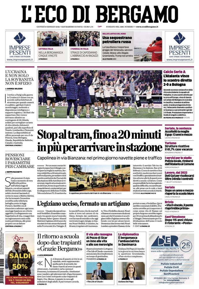 Ecco le notizie principali della prima pagina dell’edizione cartacea de L'Eco di Bergamo in edicola oggi: