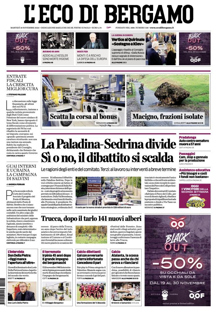 - 06:45 PRIMA PAGINA - L’Eco di Bergamo: "La Paladina-Sedrina divide. Sì o no, il dibattito si scalda"