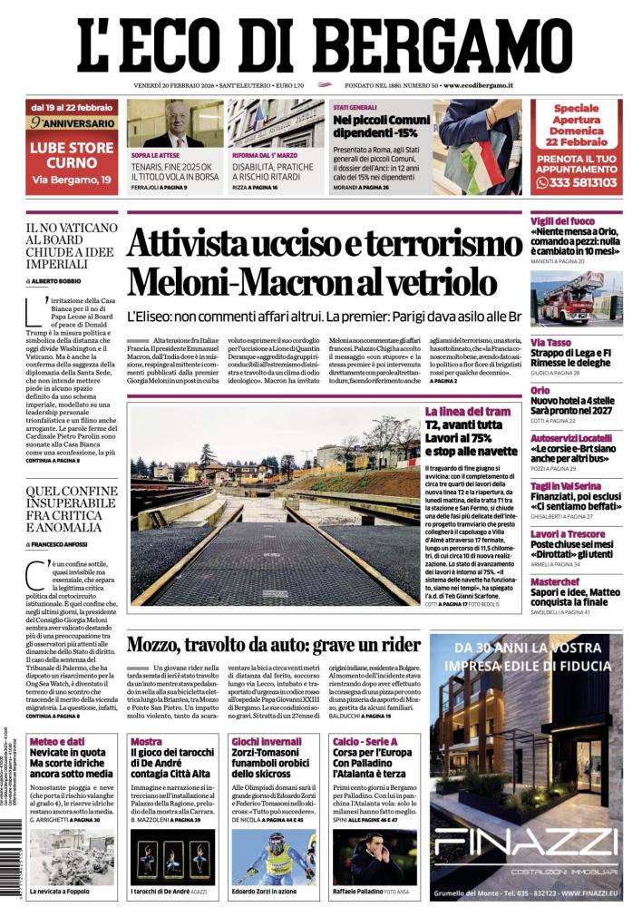 ATTIVISTA UCCISO E TERRORISMO MELONI-MACRON AL VETRIOLO - L'Eliseo: non commenti affari altrui. La premier: Parigi dava asilo alle Br. Alta tensione fra Italia e Francia. Il presidente Emmanuel Macron, dall'India dove è in missione, respinge al mittente i commenti pubblicati dalla premier Giorgia Meloni in un post in cui ha voluto esprimere il suo cordoglio per l'uccisione a Lione di Quantin Deranque, aggredito da gruppi riconducibili all'estremismo di sinistra e travolto da un clima di odio ideologico. Macron ha invitato a non commentare gli affari francesi. Palazzo Chigi ha accolto il messaggio «con stupore» e la stessa premier è poi intervenuta direttamente con parole altrettanto dure, facendo riferimento agli anni del terrorismo, una storia che la Francia conosce molto bene, avendo dato asilo politico a fior fiore di brigatisti rossi per qualche decennio.
