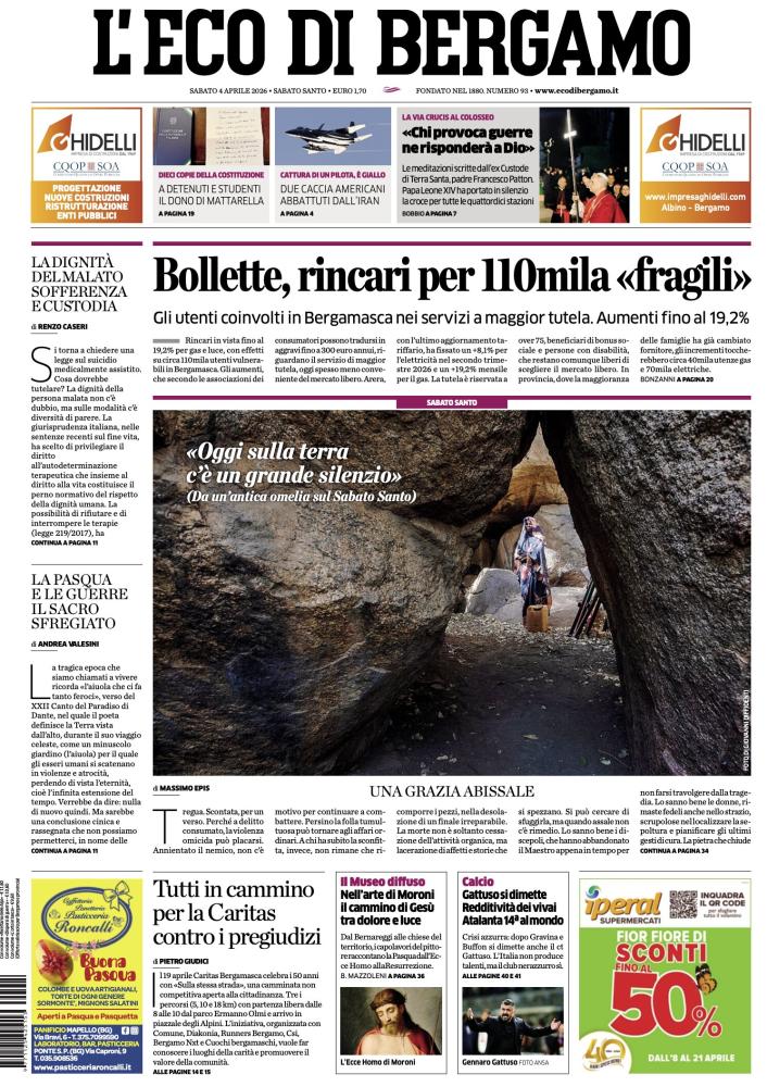 Ecco le notizie principali della prima pagina dell’edizione cartacea de L'Eco di Bergamo in edicola oggi: