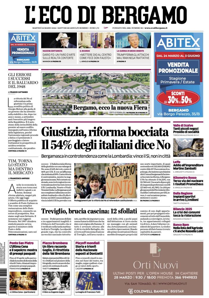 IN PRIMO PIANO - Referendum costituzionale: Giustizia, riforma bocciata. Il 54% degli italiani dice No. Bergamasca in controtendenza come la Lombardia: vince il Sì, non in città.