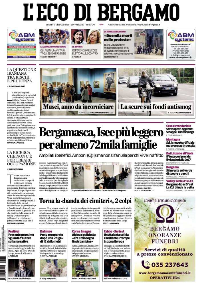 ECONOMIA E WELFARE: NUOVI PARAMETRI - L'apertura è dedicata alle novità fiscali che impattano sulle famiglie del territorio. «Bergamasca, Isee più leggero per almeno 72mila famiglie». La corsa all'Isee è ripartita con regole che ampliano i benefici: la franchigia sui titoli di stato e l'aggiornamento dei parametri favoriscono una platea più ampia. Tuttavia, Amboni della Cgil avverte: «ma non si fa nulla per chi vive in affitto», sottolineando una criticità rimasta irrisolta per gli inquilini.