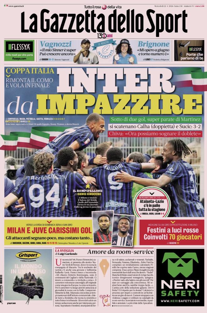 Ecco le notizie principali della prima pagina dell’edizione cartacea de La Gazzetta dello Sport in edicola oggi: