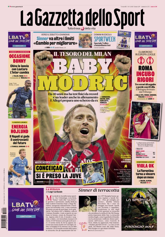 - 06:45 PRIMA PAGINA - La Gazzetta dello Sport: "Baby Modric"