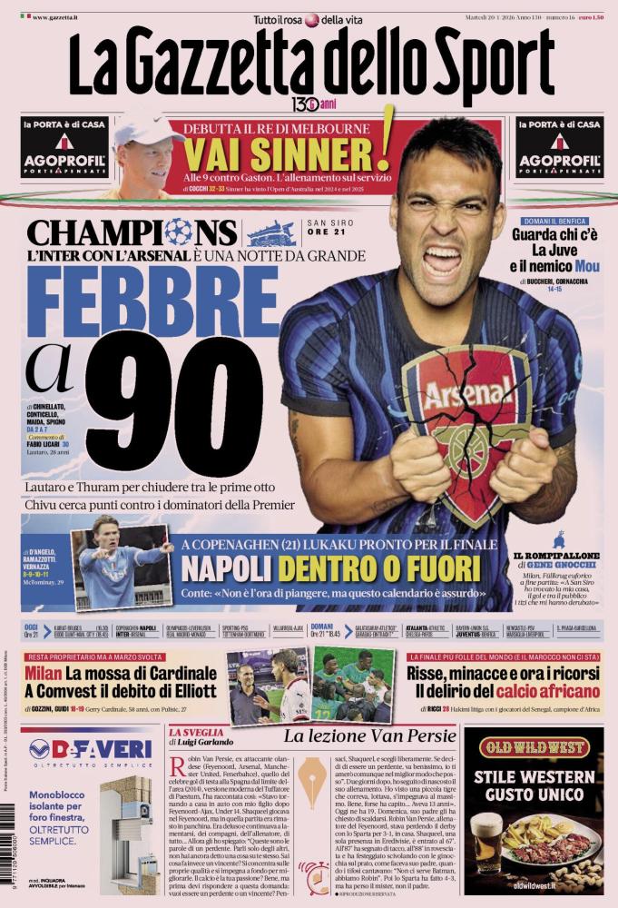 CHAMPIONS LEAGUE: NOTTE DA GRANDE A SAN SIRO - L'apertura è dedicata alla supersfida europea dei nerazzurri. Febbre a 90 - L'Inter affronta l'Arsenal a San Siro (ore 21). Lautaro Martinez e Marcus Thuram guidano l'assalto per chiudere tra le prime otto e accedere direttamente agli ottavi. Cristian Chivu cerca punti pesanti contro i dominatori della Premier League.