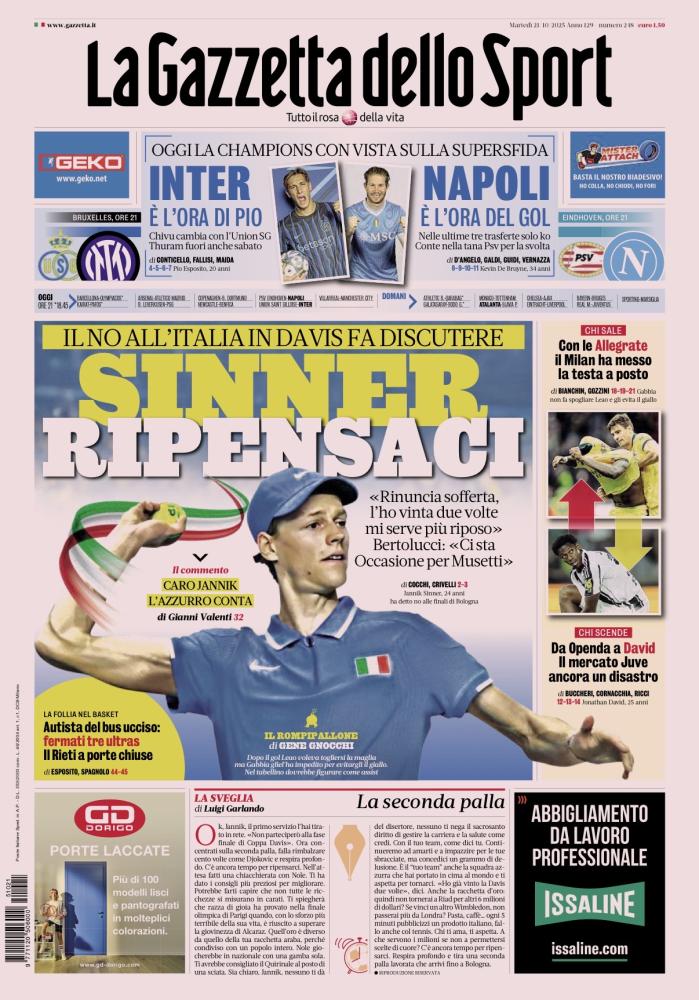 Ecco le notizie principali della prima pagina dell’edizione cartacea de La Gazzetta dello Sport in edicola oggi: