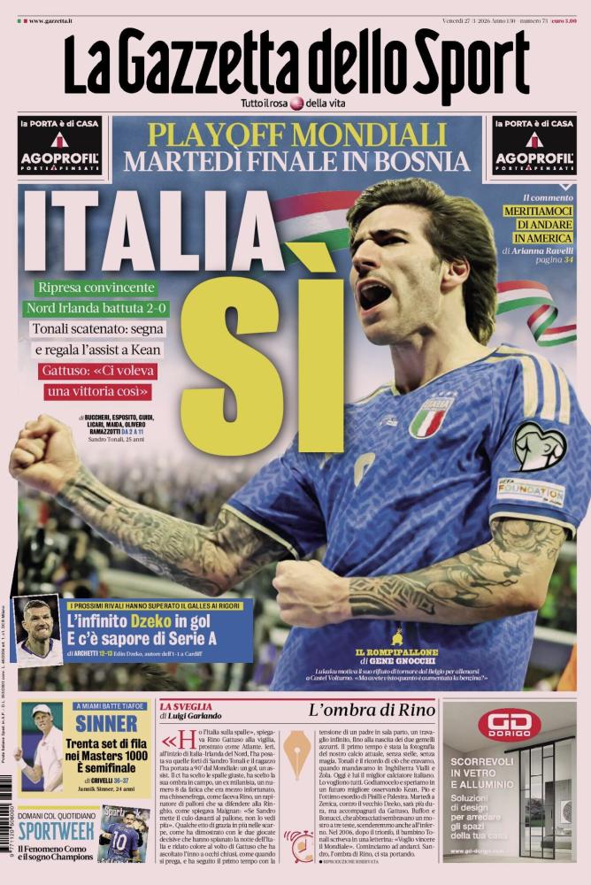 - 06:45 PRIMA PAGINA - La Gazzetta dello Sport: "Italia sì"