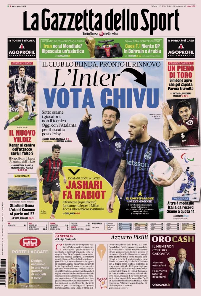 - 06:45 PRIMA PAGINA - La Gazzetta dello Sport: "L'Inter vota Chivu"
