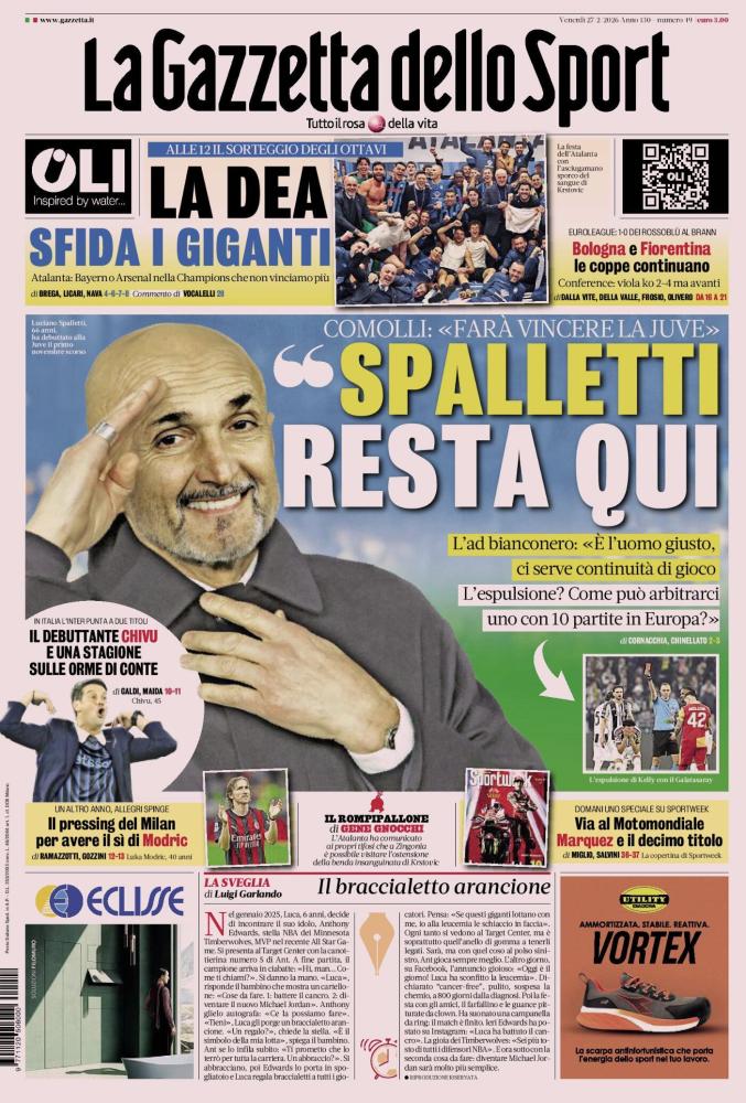 - 01:30 PRIMA PAGINA - La Gazzetta dello Sport: "La Dea sfida i giganti"