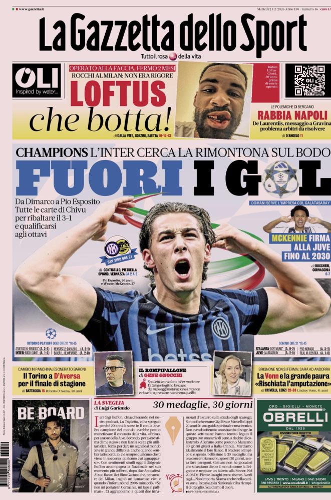 FUORI I GOL - Champions, l'Inter cerca la rimontona sul Bodø. Da Dimarco a Pio Esposito. Tutte le carte di Chivu per ribaltare il 3-1 e qualificarsi agli ottavi. San Siro si prepara alla spinta per la gara delle ore 21.