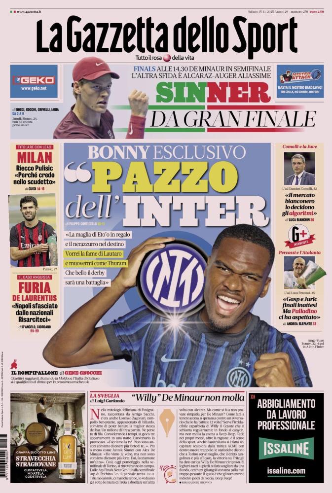 - 06:45 PRIMA PAGINA - TuttoSport: «Nessuno come Sinner»