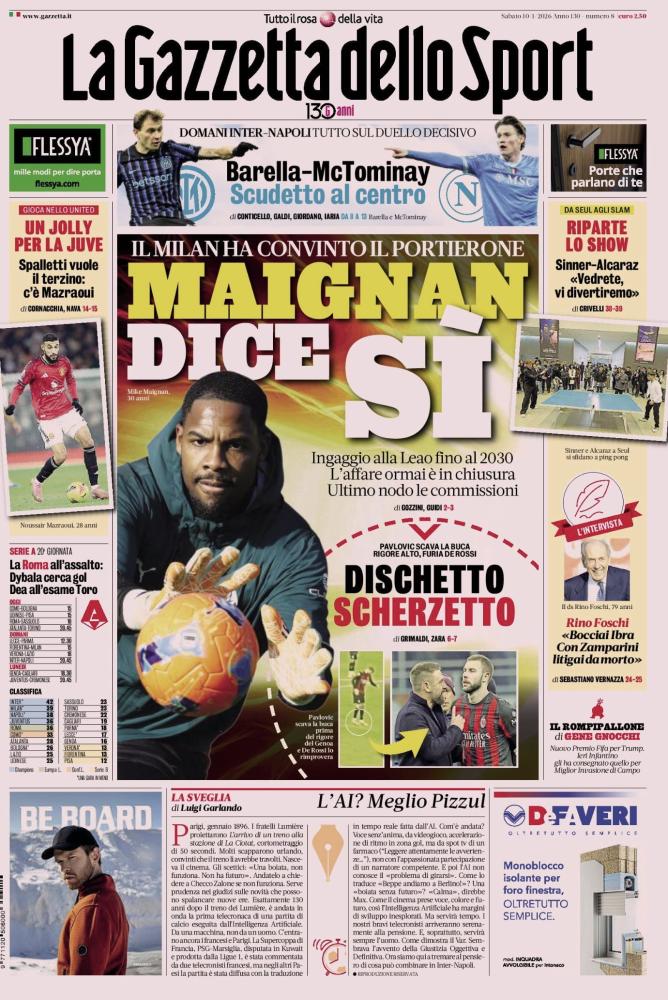 - 06:45 PRIMA PAGINA - La Gazzetta dello Sport: "Maignan dice sì"