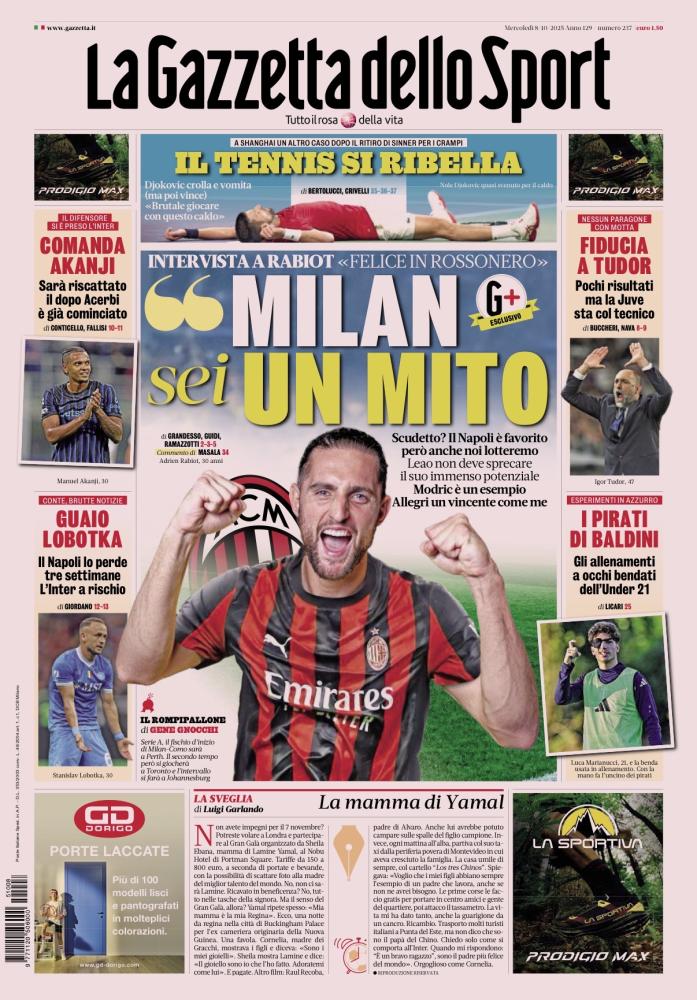 - 06:45 PRIMA PAGINA - La Gazzetta dello Sport: "Milan sei un mito"