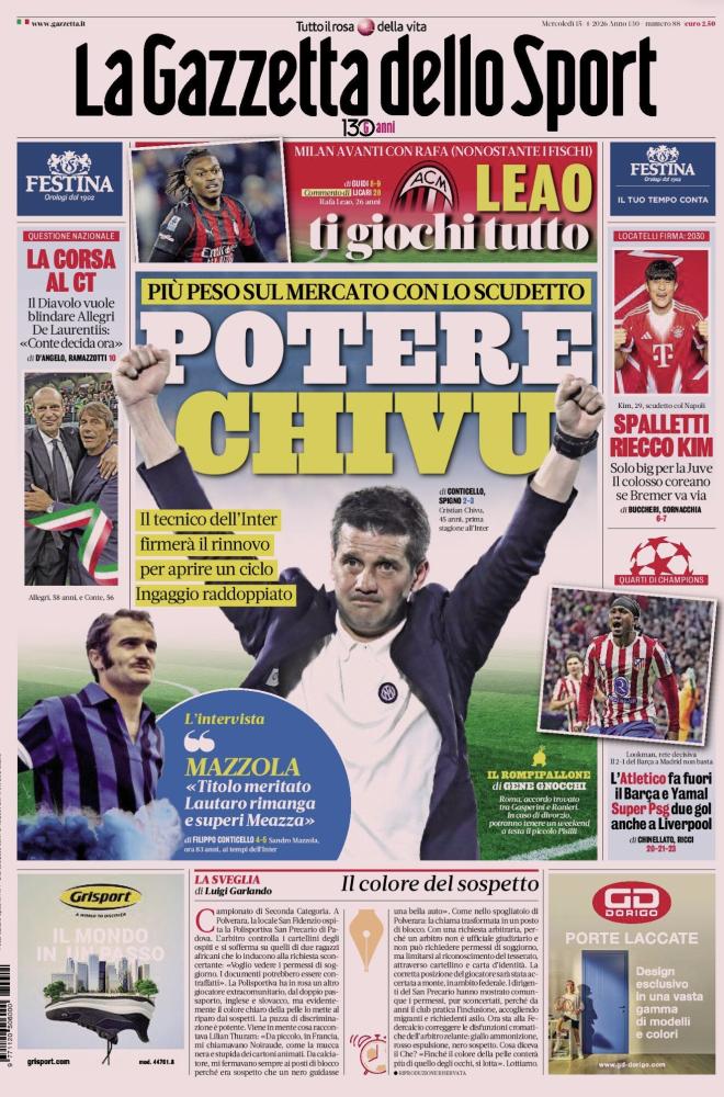- 06:45 PRIMA PAGINA - La Gazzetta dello Sport: "Potere Chivu"