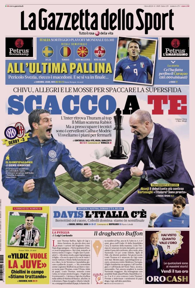 - 06:45 PRIMA PAGINA - La Gazzetta dello Sport: "Scacco a te"