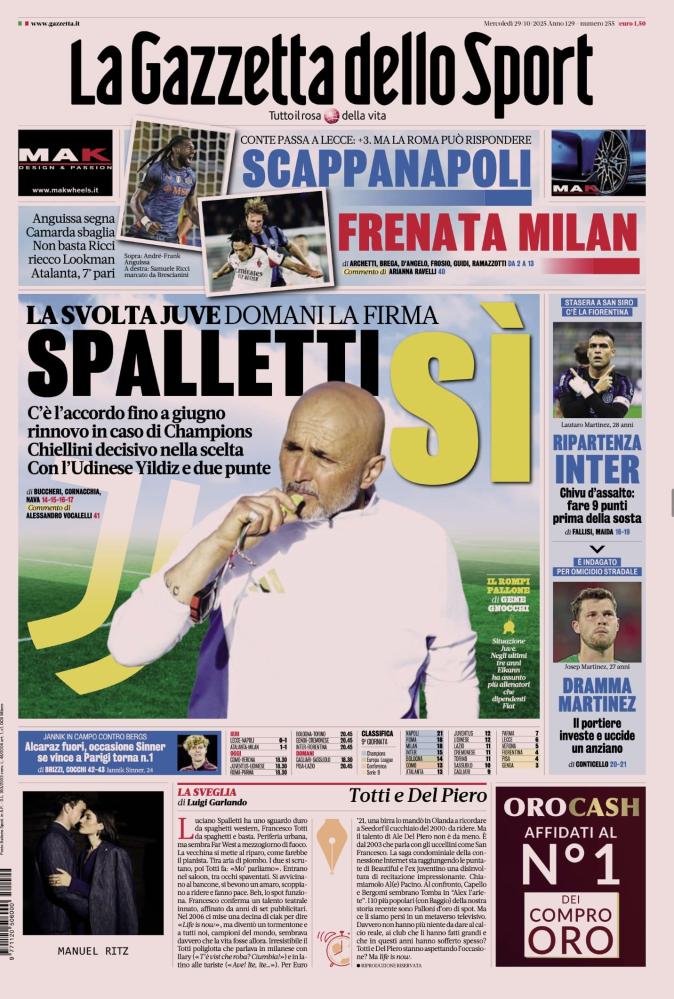 - 06:45 PRIMA PAGINA - La Gazzetta dello Sport: "Spalletti sì"