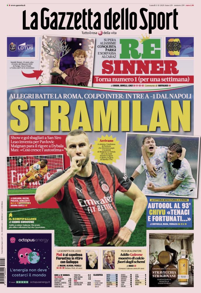 Un Milan travolgente vince e convince contro la Roma e si porta a un solo punto dal Napoli. Brillano Leao e Pavlovic, mentre Maignan è decisivo parando un rigore a Dybala. Allegri esulta: «Prestazione di carattere, questa squadra si sta ritrovando».