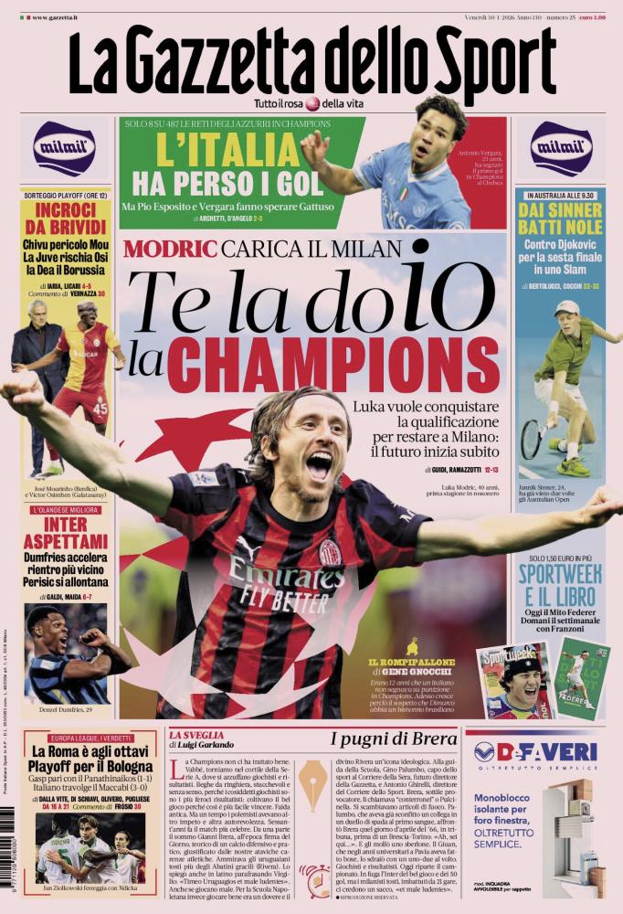 CHAMPIONS LEAGUE: SORTEGGI E ANALISI - In taglio alto a sinistra, l'esito dell'urna. INCROCI DA BRIVIDI - Sorteggio playoff (ore 12): Chivu pericolo Mou La Juve rischia Osi La Dea il Borussia - L'Inter potrebbe trovare il Benfica di Mourinho, la Juventus il Galatasaray di Osimhen e l'Atalanta il Dortmund. - Crisi del gol. L'ITALIA HA PERSO I GOL - Solo 8 su 487 le reti degli azzurri in Champions. "Ma Pio Esposito e Vergara fanno sperare Gattuso".