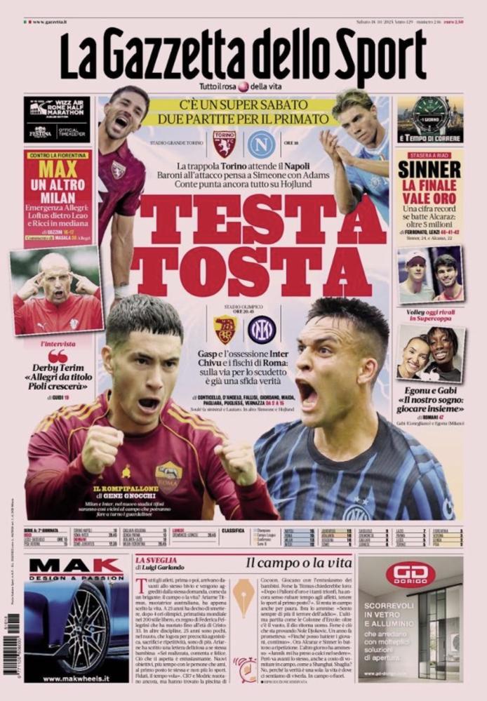 - 06:45 PRIMA PAGINA - La Gazzetta dello Sport: "Testa tosta"