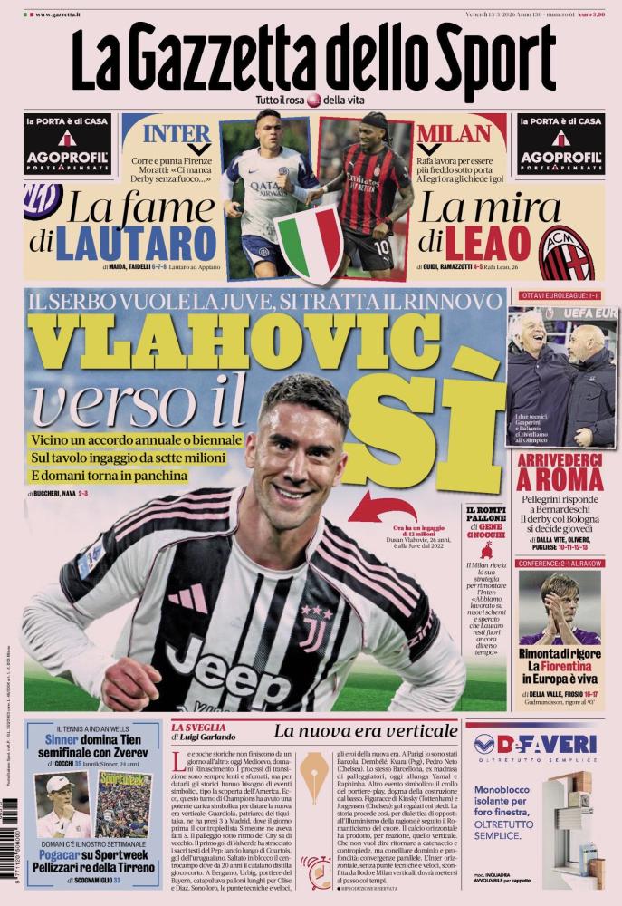 - 06:45 PRIMA PAGINA - La Gazzetta dello Sport: "Vlahovic verso il sì"