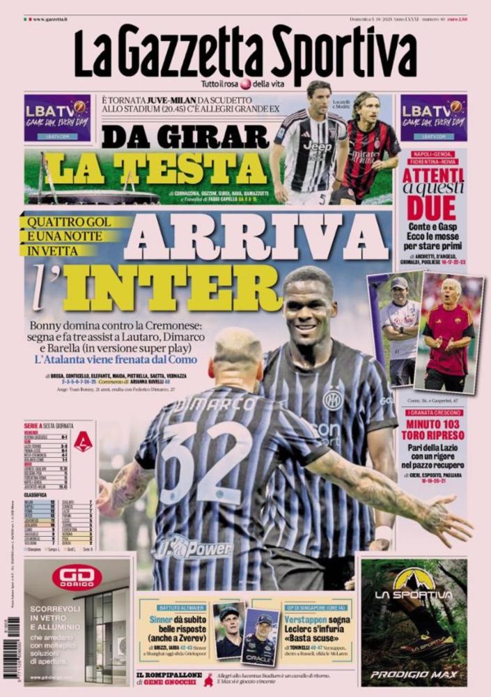 - 06:45 PRIMA PAGINA - Corriere dello Sport: "Troppo Bonny"
