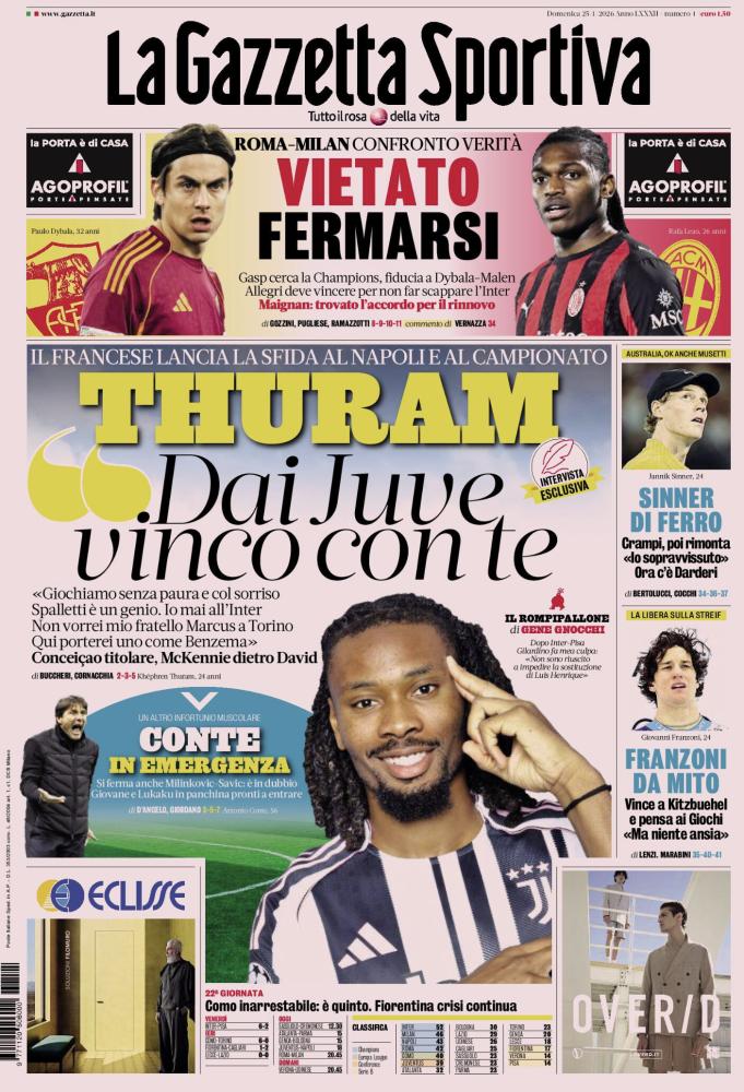 - 06:45 PRIMA PAGINA - La Gazzetta Sportiva: "Thuram «Dai Juve vinco con te»"