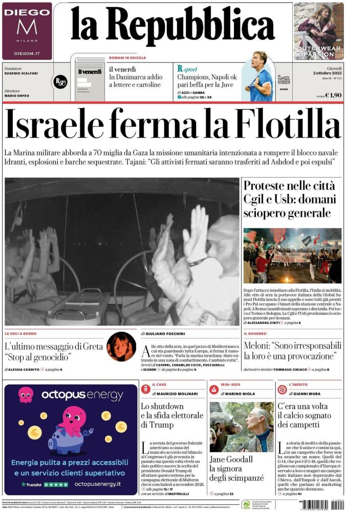 - 06:44 PRIMA PAGINA - la Repubblica: "Israele ferma la Flotilla"