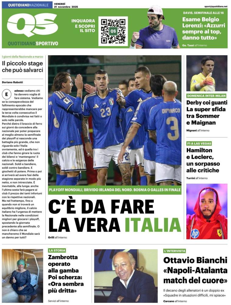 Ecco le notizie principali della prima pagina dell’edizione cartacea de "QS – Quotidiano Sportivo" in edicola oggi: