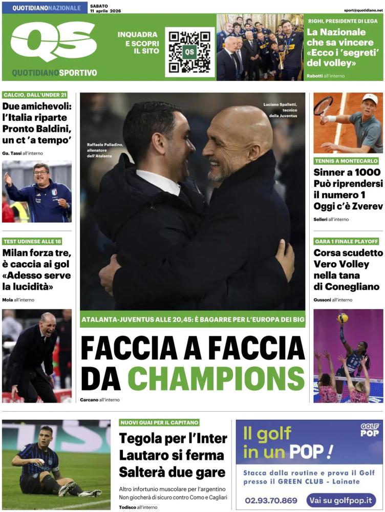 - 06:45 PRIMA PAGINA - QS Quotidiano Sportivo: "Atalanta-Juventus: è bagarre per l'Europa dei big. Faccia a faccia da Champions"
